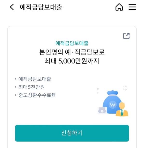 1. 금융상품몰 -> 대출 -> 예적금담보대출