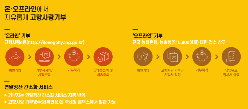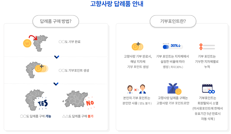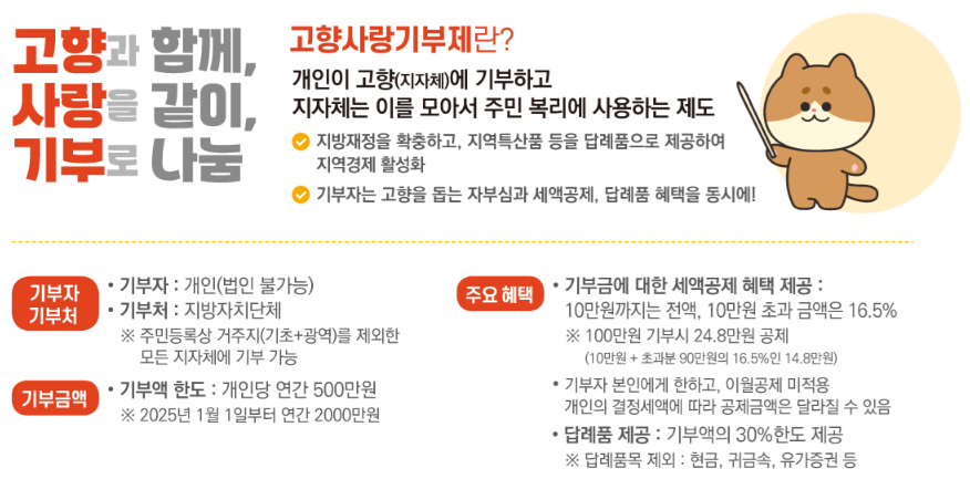 개인이 고향(지자체)에 기부하고 해당 금액을 기부금으로 공제받는 제도로