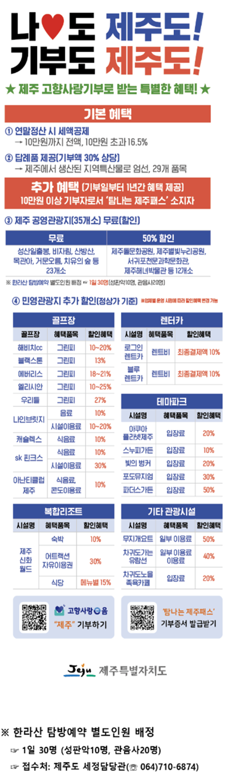 제주도의 경우 기부일로부터 1년동안 탐나는제주패스라는 혜택도 받을수 있음.